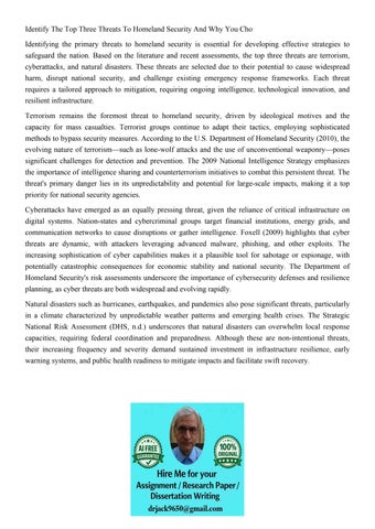 Identify The Top Three Threats To Homeland Security And Why