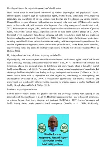 Identify and discuss the major indicators of men's health st