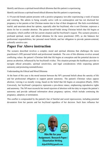 Identify and discuss a spiritual/moral/ethical dilemma that