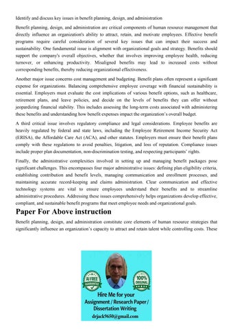 Identify and discuss key issues in benefit planning, design,
