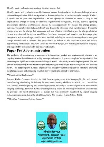 Identify, locate, and synthesize reputable literature source