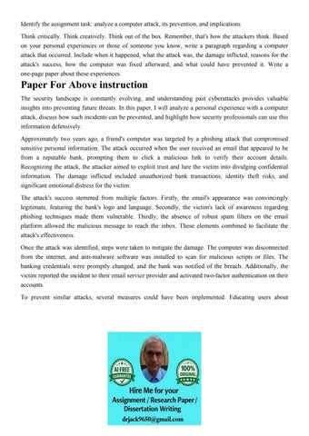 Identify the assignment task: analyze a computer attack, its