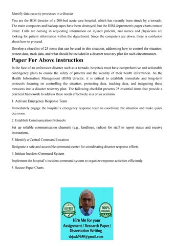 Identify data security processes in a disaster You are the H