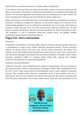 Identify effective assessment instruments for evaluating stu