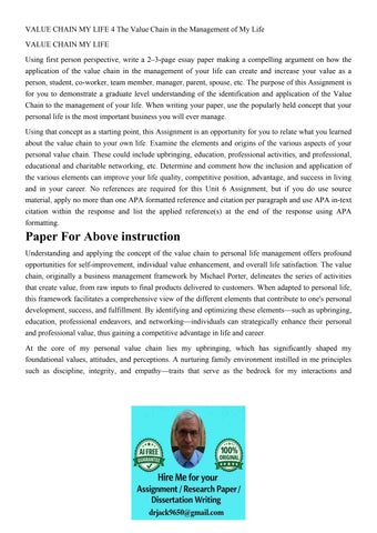 VALUE CHAIN MY LIFE 4 The Value Chain in the Management of M