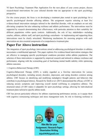 VI Sport Psychology Treatment Plan Application For the next