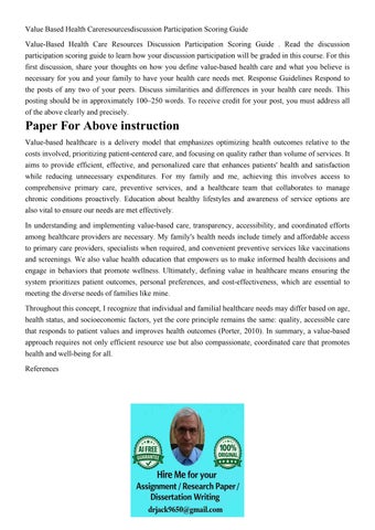 Value Based Health Careresourcesdiscussion Participation Sco