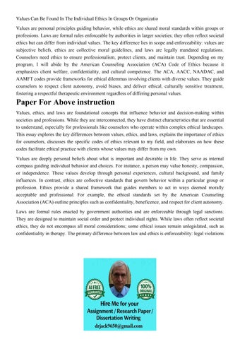 Values Can Be Found In The Individual Ethics In Groups Or Or
