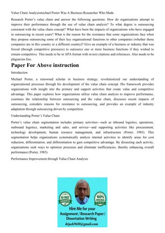 Value Chain Analysismichael Porter Was A Business Researcher