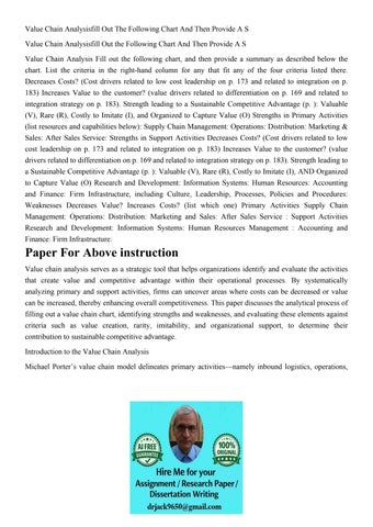 Value Chain Analysisfill Out The Following Chart And Then Pr