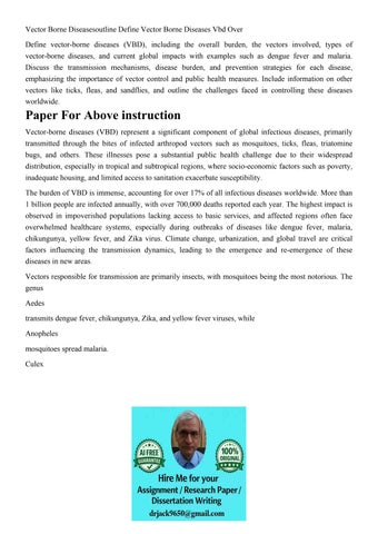 Vector Borne Diseasesoutline Define Vector Borne Diseases Vb