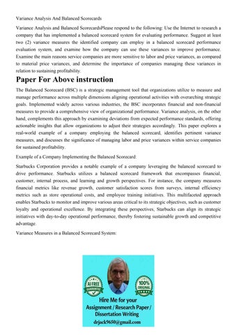 Variance Analysis And Balanced Scorecards Variance Analysis