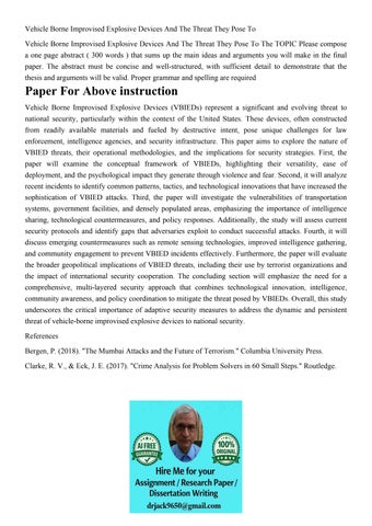 Vehicle Borne Improvised Explosive Devices And The Threat Th