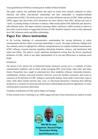 Varying Definitions Of Online Communication Andtheir Effects