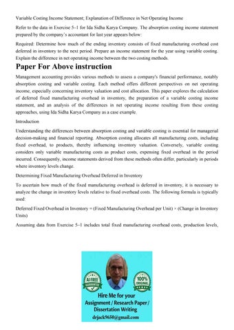 Variable Costing Income Statement; Explanation of Difference