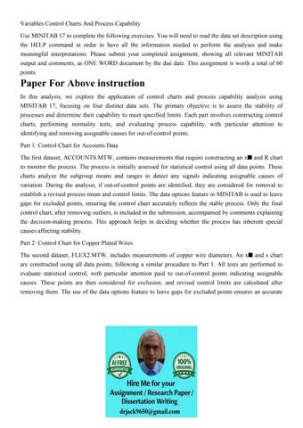 Variables Control Charts And Process Capability Use MINITAB