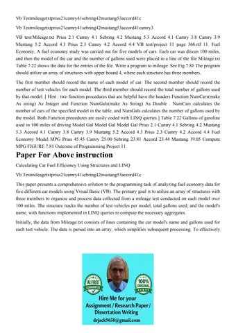 Vb Testmileagetxtprius21camry41sebring42mustang53accord41c V