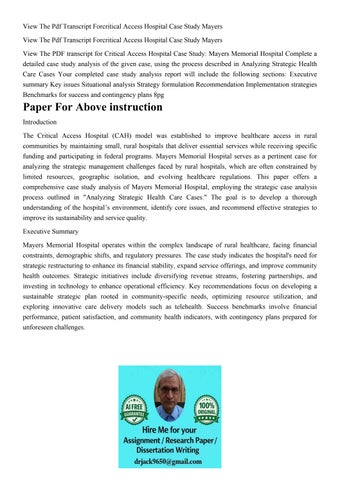 View The Pdf Transcript Forcritical Access Hospital Case Stu