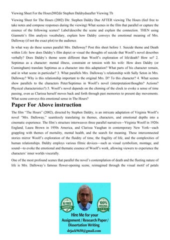 Viewing Sheet For the Hours2002dir Stephen Daldrydueafter Vi
