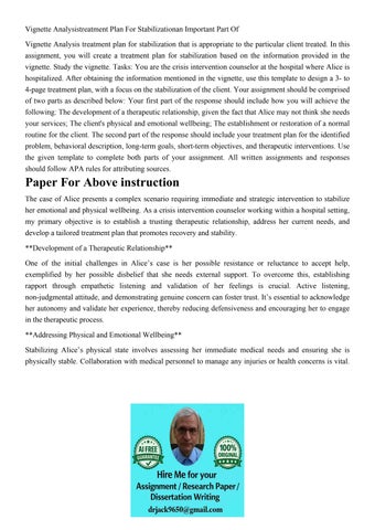 Vignette Analysistreatment Plan For Stabilizationan Importan