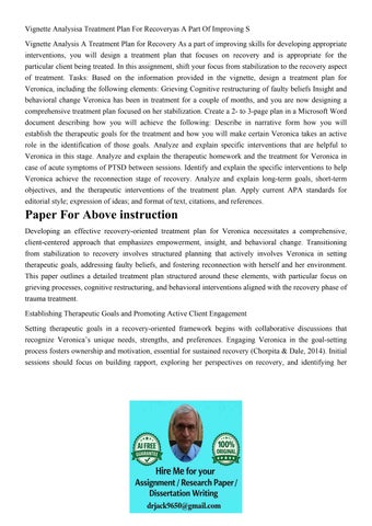 Vignette Analysisa Treatment Plan For Recoveryas A Part Of I