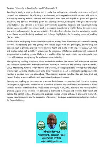 Personal Philosophy In Teaching2personal Philosophy In T Tea