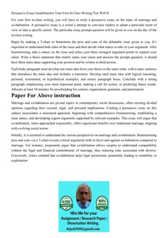 Persuasive Essay Guidelinesfor Your First In Class Writing Y