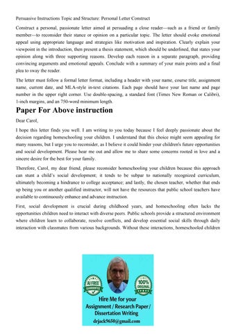 Persuasive Instructions Topic and Structure: Personal Letter