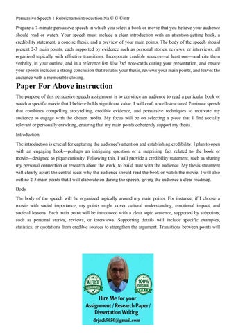 Persuasive Speech 1 Rubricnameintroduction Na ร ร รintr Prep