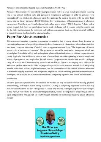 Persuasive Presentationthe Second Individual Presentation Wi