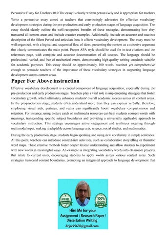 Persuasive Essay for Teachers 10.0 The essay is clearly writ