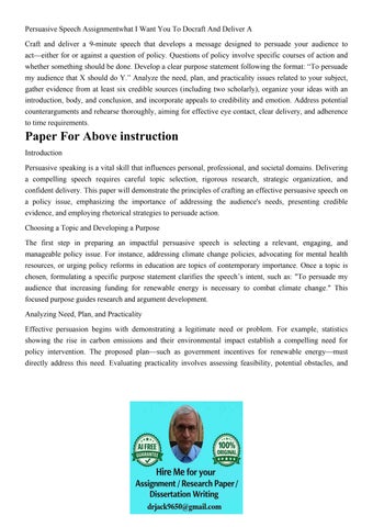 Persuasive Speech Assignmentwhat I Want You To Docraft And D