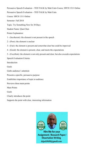 Persuasive TED TALK Speech Evaluation Course Spch 1311 Onlin