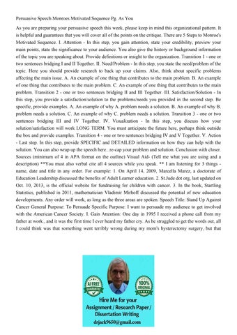 Persuasive Speech Outline Monroes Motivated Sequence Mmsfear