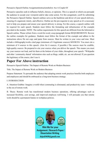Persuasive Speech Outline Assignmentinstructionsbelow Are A
