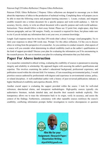 Peterson Engl 2351ethics Reflection 2 Purpose Ethics Reflect