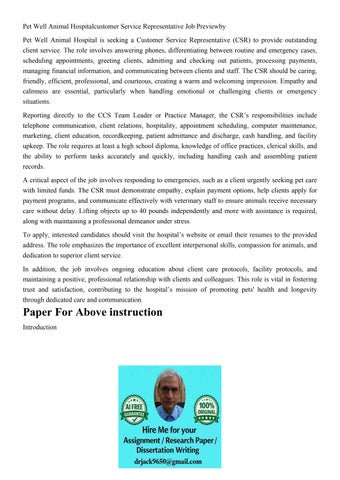 Pet Well Animal Hospitalcustomer Service Representative Job