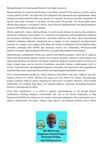 Pharmacotherapy For Cardiovascular Disorders Case Study 1pat