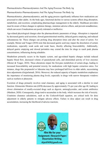 Pharmacokinetics Pharmacodynamics And The Aging Processas Th
