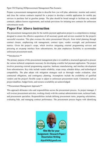 Pgmt 530 92spring 2020procurement Management Plan Scenario P