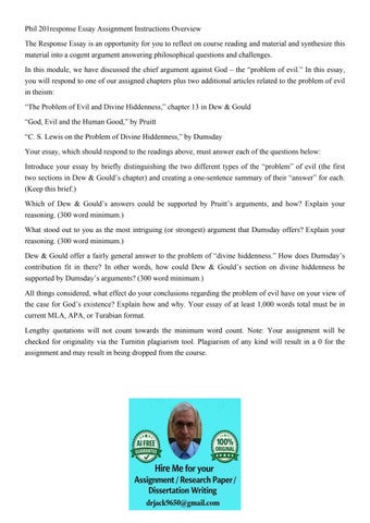 Phil 201response Essay Assignment Instructions Overview The