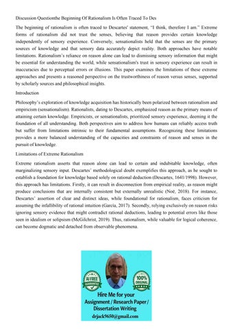 Discussion Questionthe Beginning Of Rationalism Is Often Tra