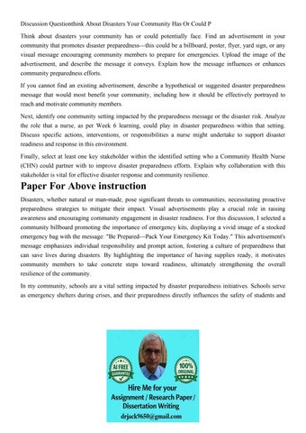 Discussion Questionthink About Disasters Your Community Has