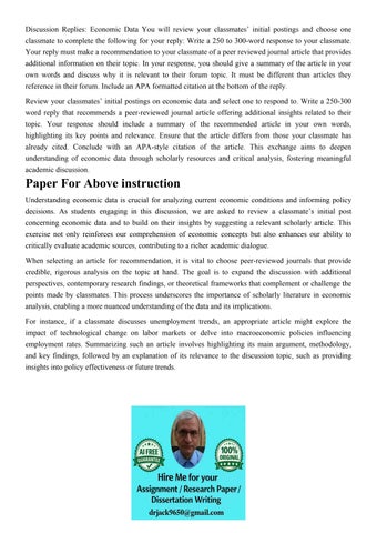 Discussion Replies: Economic Data You will review your class