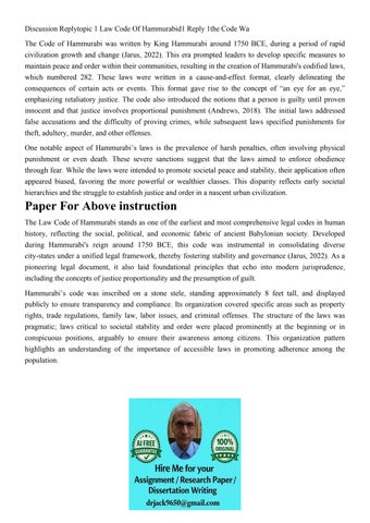 Discussion Replytopic 1 Law Code Of Hammurabid1 Reply 1the C