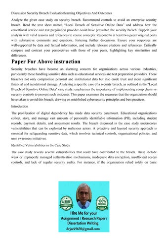 Discussion Security Breach Evaluationlearning Objectives And