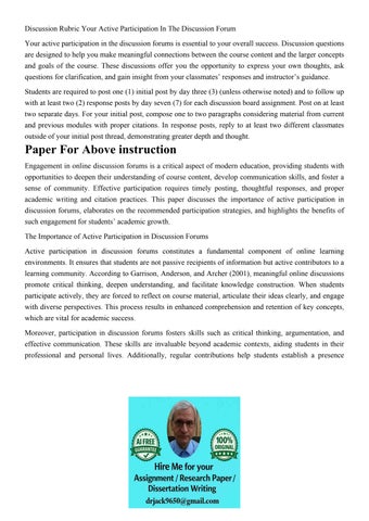 Discussion Rubric Your Active Participation In The Discussio