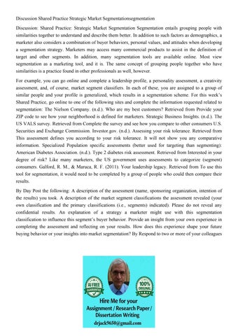 Discussion Shared Practice Strategic Market Segmentationsegm
