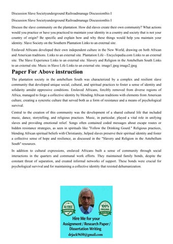 Discussion Slave Societyunderground Railroadmanage Discussio