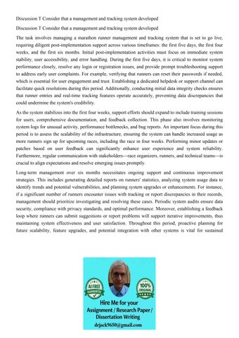 Discussion T Consider that a management and tracking system